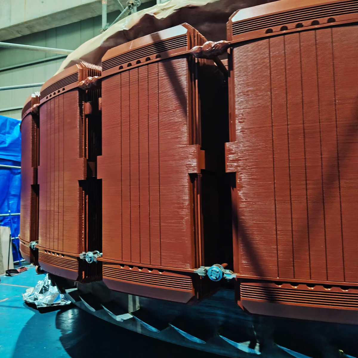 Noviembre de 2025 fue un mes de desplegarse por distintos puntos del país. Entre los cuales destacó la Central Eléctrica Rucúe, donde —según contó Gabrielle Bejas, coordinadora de Contratos— el equipo liderado por Héctor Sánchez se encargó del mantenimiento del rotor y estator del generador. Se desmontaron los polos para verificar su estado, comprobándose que estaban bien.