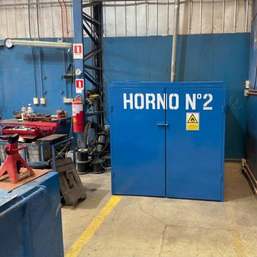 Los calores extremos son piezas claves en la reparación eléctrica industrial. Nuestra empresa tiene tres hornos que trabajan con resistencias eléctricas en sus interiores. Se conectan a 380 volts y los operarios se encargan de distribuir la potencia en las resistencias de 220 volts. Cada uno tiene nueve pares de resistencias dentro. Junto a ellas encontramos unos motores para recircular la temperatura o eliminar los olores de los barnices. Son pequeños, de ventilación. Los hornos poseen asimismo controles de temperatura. El 1 y el 2 están en la nave central de la empresa, y el tercero se encuentra en el área de pintado. Se emplean principalmente para curar los barnices cuando son motores nuevos, para sacarles la humedad, etcétera. Deben ser hornos eléctricos, porque si funcionasen con gas, aumentaría la humedad que tanto daña a los motores. Su uso implica medidas de seguridad y el máximo profesionalismo.